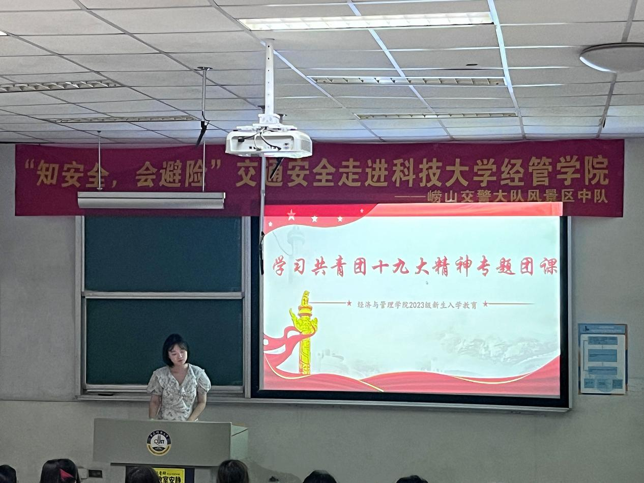 为深入学习宣传中国共产主义青年团第十九次全国代表大会精神及习近平总书记同团中央新一届领导班子成员集体谈话时的重要讲话精神,引领广大团员青年坚定不移听党话、跟党走,9月18日,经管学院组织2023级新生开展学习“中国共产主义青年团第十九次全国代表大会精神”主题团课。
