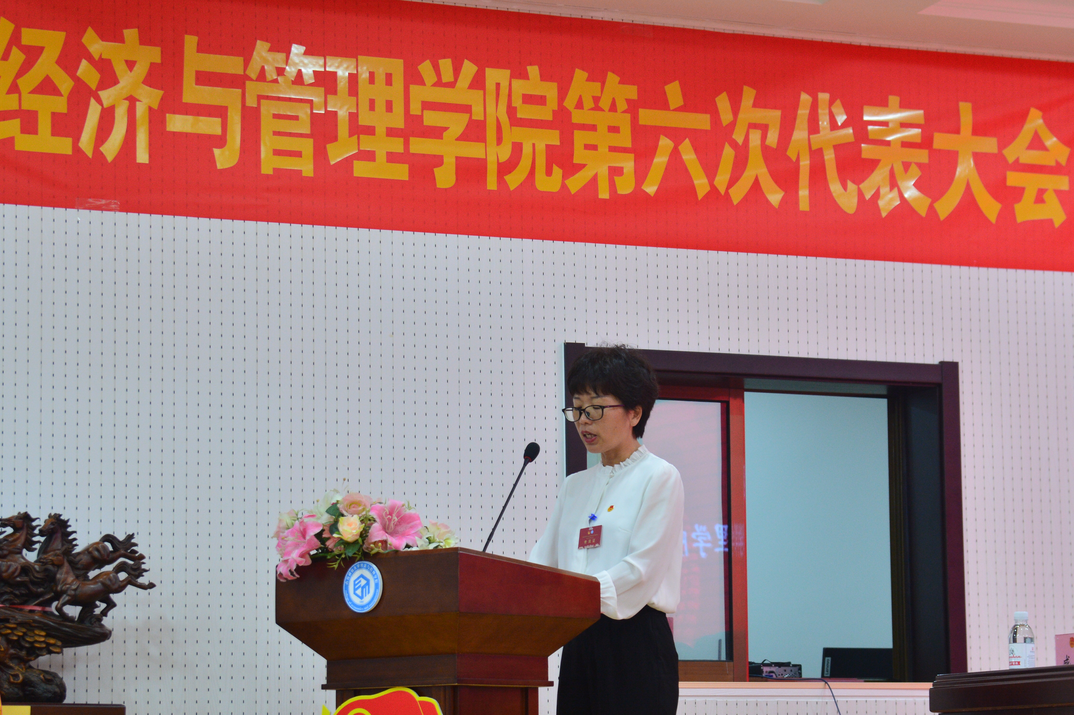 王聪代表共青团经济与管理学院第五届委员会作《强化政治引领 深化组织改革 提升攻坚能力,为建设“特色鲜明 走在前列”高水平大学贡献青春力量》工作报告。