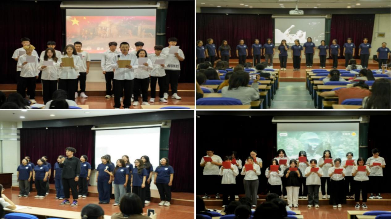 声入人心,诵响爱国强音。双节来临之际,为弘扬爱党爱国的主旋律,增强学生的民族自豪感和文化自信心,传承红色基因,赓续红色血脉,9月22日晚,经管学院于弘毅楼开展“愉快学习,健康成长”2023级新生红色经典朗诵活动。一首首慷慨激昂的诗歌、一段段扣人心弦的配乐、一句句铿锵有力的话语,歌颂着无数仁人志士和革命英烈抛头颅、洒热血,用鲜血和生命谱写“敢教日月换新天”的丰功伟绩,让人们穿越历史硝烟,感悟革命先辈的心路情怀,发出向党和祖国声情告白的嘹亮之声。