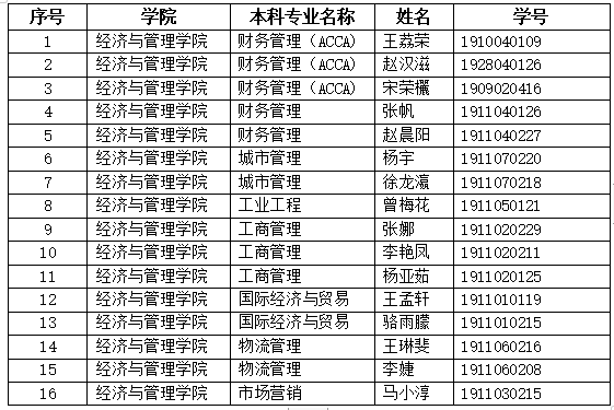 根据《必赢bwin线路检测中心2023年推荐优秀应届本科毕业生免试攻读硕士学位研究生工作方案》和《经济与管理学院2023级硕士研究生推免生遴选办法》,经学生本人申请,学院资格审查,学院研究生推免领导小组研究,拟推荐王荔荣等16名同学获得推免资格,现将名单公示如下,公示期3个工作日(公示时间:2022年9月20日-2022年9月22日),如有异议,请于公示期内到经管学院副院长办公室或经管学院教学办公室反映。