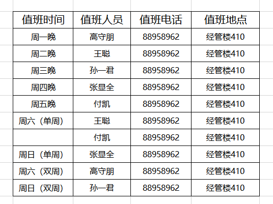 经管学院学工办(分团委)19-20学年第二学期值班安排